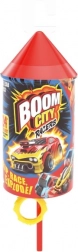 Avtomobili Boom City Racers v embalaži, ki spominja na ognjemet, embalaža je presenečenje, odpri in odkrij eno izmed 24 različnih vozil. Vstavi avto v izstreljevalec, sproži in videl boš, kako se zahvaljujoč dodatnemu pogonu avto hitro premika. Ko avto trči v oviro, eksplodira in se razbije na koščke. Sestavljanje nazaj je zelo enostavno. Embalaža vsebuje: avto, izstrelilno vrvico, izstreljevalec in vodič za zbiratelje. Dimenzija izdelka: 22x6x7cm, dimenzija avtomobilčka 8,5x4,5x4cm. Boom City Racers so najeksplozivnejši in najhitrejši avtomobili. Vstavi v izstreljevalec, sproži in glej kako se razbijejo na koščke. Sestavi nazaj in lahko izstreliš znova. Igraj se sam ali s prijatelji. Primerno za otroke od 4 let.