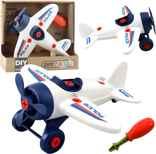 Policijsko letalo DIY za privijanje je idealna igrača za otroke, ki obožujejo ustvarjanje in tehniko. Zahvaljujoč velikim, enostavno oprijemljivim vijakom lahko otrok letalo večkrat razstavi in ponovno sestavi, s čimer razvija potrpežljivost, samostojnost in koordinacijo oko–roka. Po končani gradnji se lahko poda v akcijsko igro z vrtečim se propelerjem in funkcionalnimi kolesci.