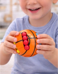 Odporna plastična izvedba je lahka in varna, idealna za otroške roke. Igrača nudi senzorične vtise (dotik, vid), podpira koordinacijo oko–roka in pomaga pri umiritvi ter osredotočenosti, bodisi pri samostojni igri ali skupnih aktivnostih s starši.