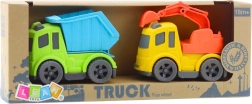 Prekucnik ima dvižno in nagibno kesono za enostavno razkladanje tovora. Mini bager je opremljen s premično in vrtljivo roko z žlico, zato lahko otroci nakladajo, prestavljajo in gradijo po svoji domišljiji. Upravljanje posameznih delov podpira koordinacijo oko–roka in logično razmišljanje.
