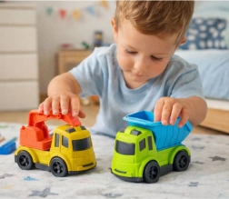 Ta kompaktni komplet je idealen za majhne roke – avtomobilčki so enostavni za držanje in upravljanje. Barvita izvedba pritegne pozornost in spodbuja k aktivni igri. Trpežna bioplastika zagotavlja varnost in dolgo življenjsko dobo tudi pri intenzivni uporabi na preprogi, v peskovniku ali na vrtu.