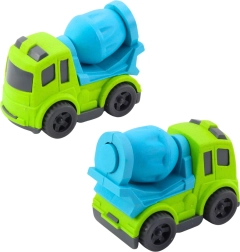 Gibalni elementi – vrtljiv boben pri mešalniku in izvlečni, vrtljiv kavelj pri vlečnem vozilu – razvijajo koordinacijo oko–roka in spodbujajo domišljijo. Avtomobilčki so lahki, dobro se prilegajo roki in so odlični tako v sobi kot na vrtu ali v parku.
