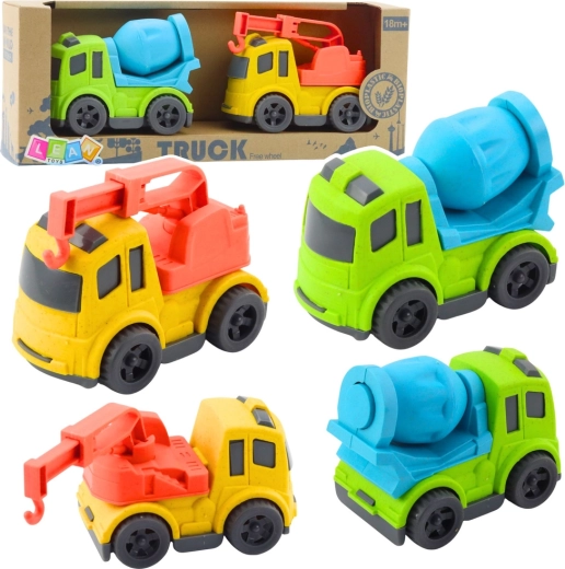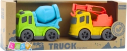 Odkrijte zabaven gradbeni set za male ljubitelje strojev: mešalnik in vlečno vozilo s kavljem sta izdelana iz kakovostne bioplastike, ki je trpežna, varna in pripravljena na vsakodnevno igro. Zaradi živih barv in realističnih podrobnosti otroke hitro popelje v svet gradnje in prevoza.