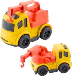 Rumeno vlečno vozilo ima vrtljivo roko s kavljem, ki jo je mogoče izvleči za nakladanje in vleko manjših igrač. Spodbuja koordinacijo in natančnost gibov.