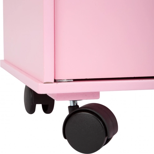 Vrtljiva kolesca omogočajo gladko in varno premikanje omarice po otroški sobi ali igralnici.