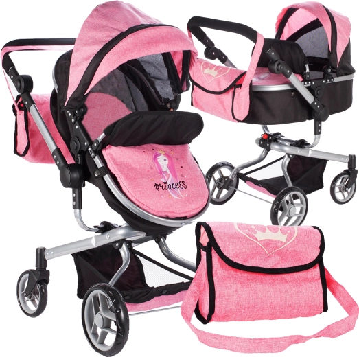 Voziček 2v1 za punčke Princess rožnato‑črn