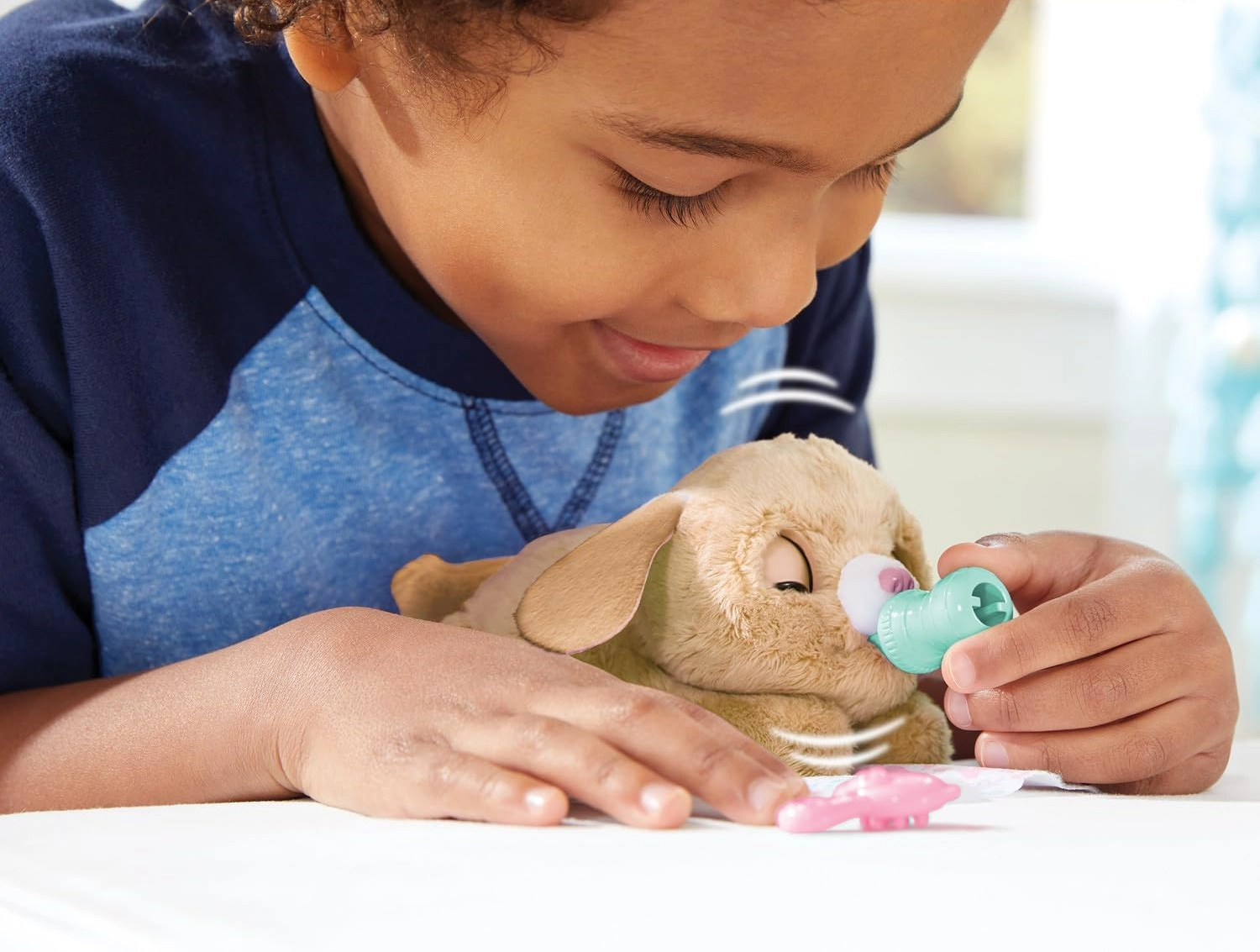 Otroci lahko mladička hranijo s stekleničko, mu dajo dudo, ga češejo s krtačko in ga pokrijejo z toplo odejico. Ob božanju mladiček prede in oddaja zvoke zadovoljstva, po negi pa zapira oči, kot bi zaspal. Kompaktna velikost je popolna za na pot in v posteljico.