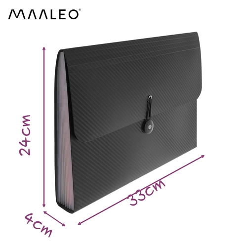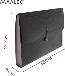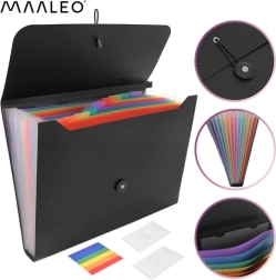 Iščete učinkovit način, kako pregledno razvrstiti pogodbe, račune ali šolske materiale? Ta razširljiv razvrščevalnik MAALEO v formatu A4 ponuja 13 logično razporejenih pregrad, zahvaljujoč katerim imate vse na dosegu roke. Harmonika zasnova nudi občutno večjo kapaciteto kot klasične mape, obenem pa ostaja kompaktna.
