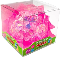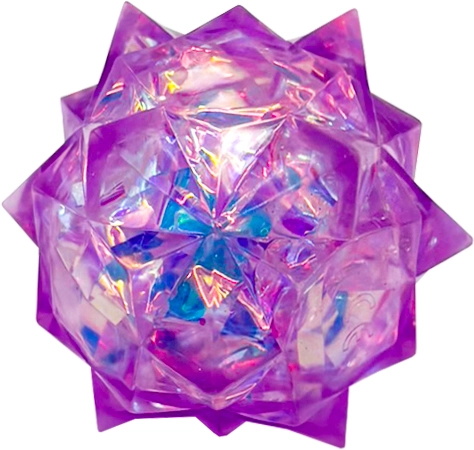 Antistresna žogica GLUMI združuje sprostitev in nežno krepitev roke. Njeni večkotni koničasti deli in fasete zagotavljajo prijetno taktilno stimulacijo, ki pomaga sprostiti napetost in se osredotočiti. Bleščeč učinek dodatno deluje vizualno pomirjujoče.