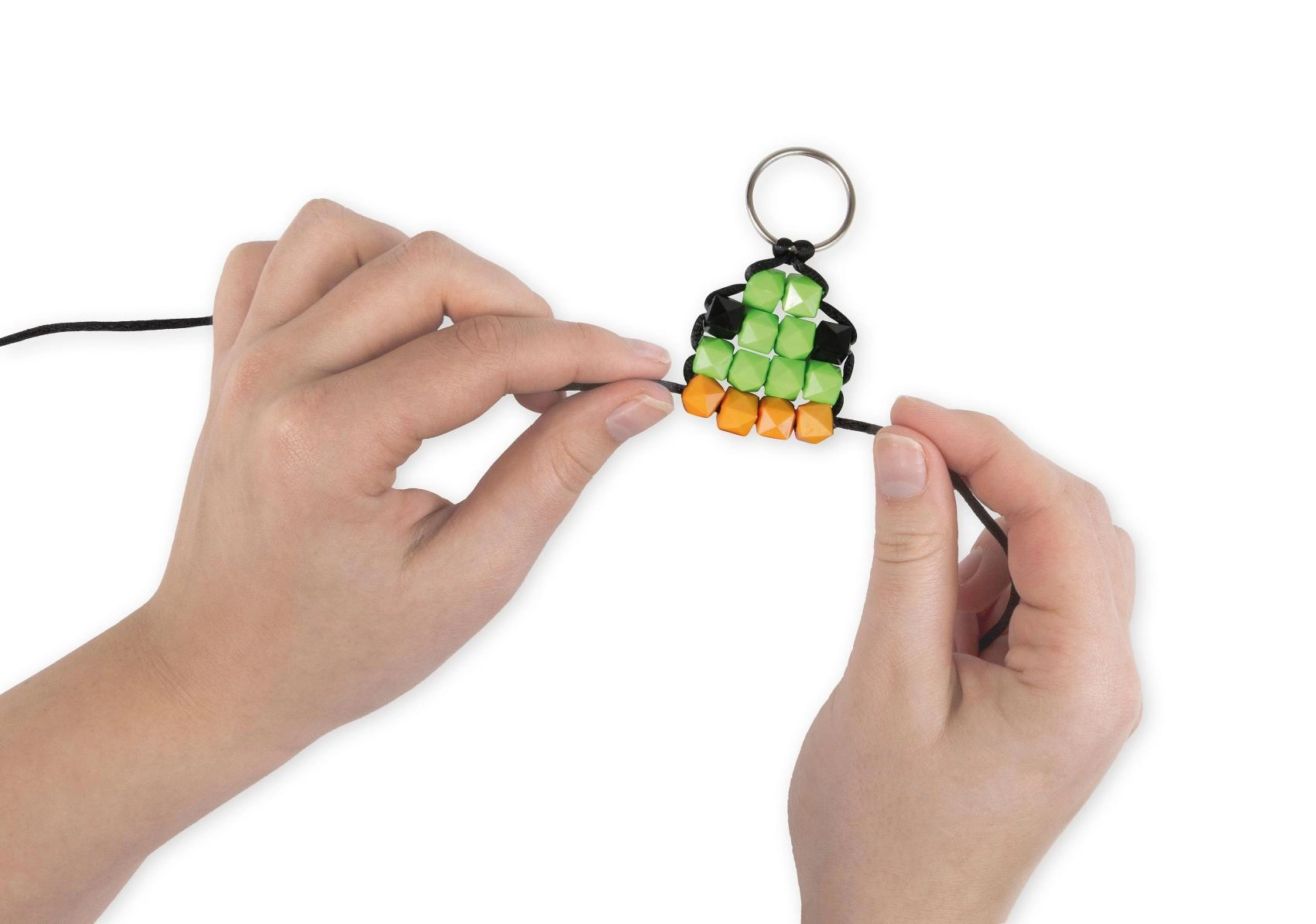 V paketu najdete 250 modnih kroglic v pestrem naboru barv, črno vrvico za nizanje in 4 kovinske obročke za dokončanje obeskov. Postopek je preprost in intuitiven – nizajte po vzorcu in v hipu ustvarite modne talismane.