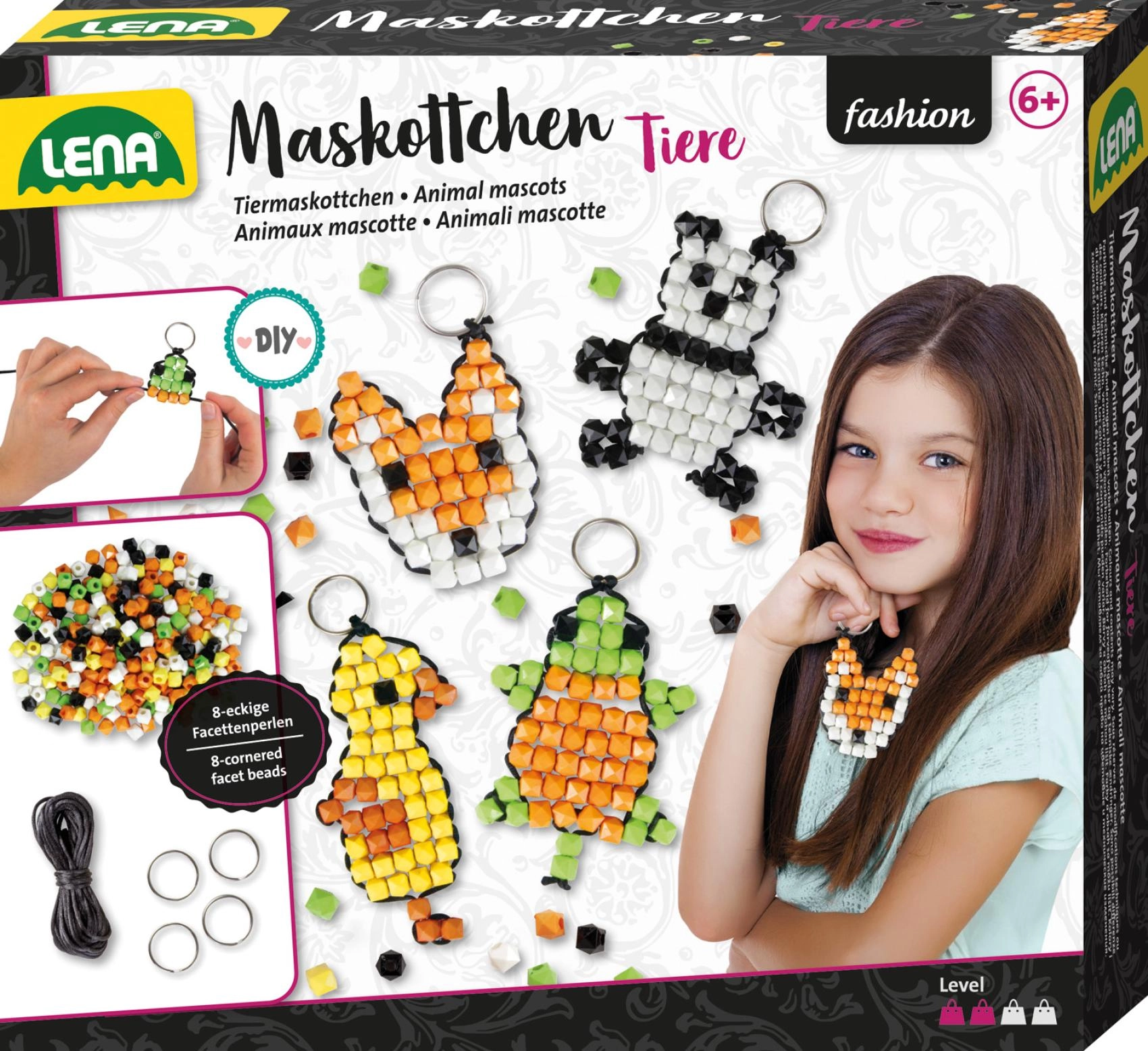 Odkrijte zabaven ustvarjalni komplet, s katerim preprosto izdelate do 4 izvirne obeske v obliki živalic. Paket vsebuje 250 barvnih kroglic, črno vrvico in 4 kovinske obročke – vse pripravljeno za takojšnje ustvarjanje. Odlično kot darilo, za okrasitev ključev in nahrbtnika ter za razvoj fine motorike in ustvarjalnosti.