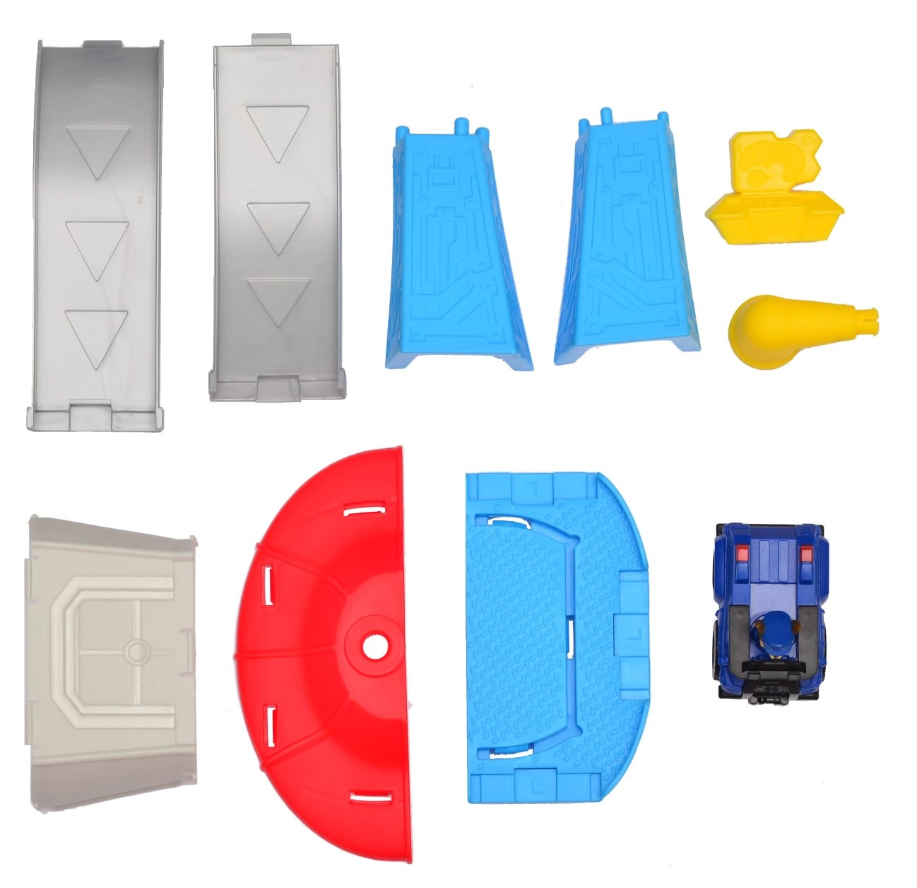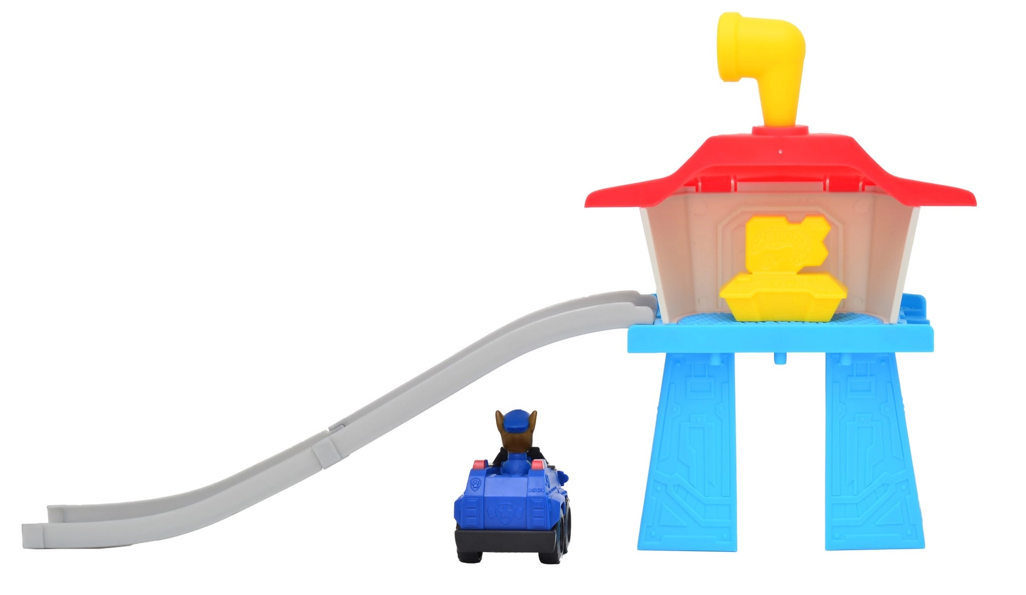 Posamezne komponente se enostavno zaskočijo. V kompletu so stolp, rampa in vozilo CHASE za takojšnjo igro.
