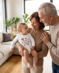 Udoben otroški bodi z dolgimi rokavi znamke NEW BABY iz 100 % bombaža navduši z nežnostjo do otroške kože in zabavnim potiskom »Bili sta tukaj babica in dedek«. Zahvaljujoč praktičnemu zapenjanju na nete na ramenih in med nogicami sta previjanje in oblačenje hitra in enostavna. Barve potiska so certificirane in varne za dojenčke.