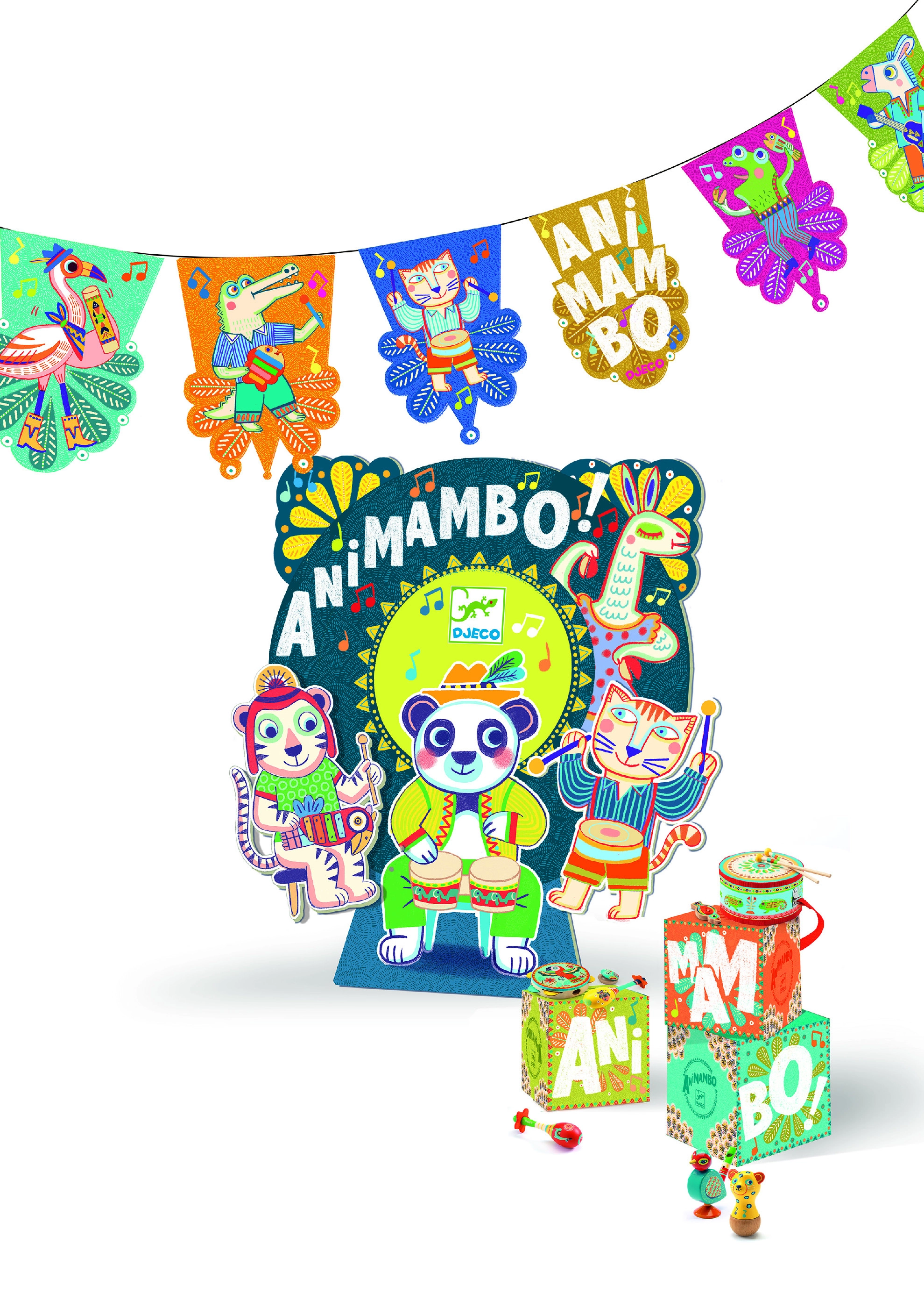 Predstavitveni set Animambo prinaša vizualno učinkovit način, kako predstaviti kolekcijo otroških glasbil v enotnem, igrivem slogu. Odlično se poda za razstavljanje v trgovini, vrtcu ali igralnem kotičku ter pomaga graditi ustvarjalno okolje, ki otroke motivira k odkrivanju ritmov in zvokov.