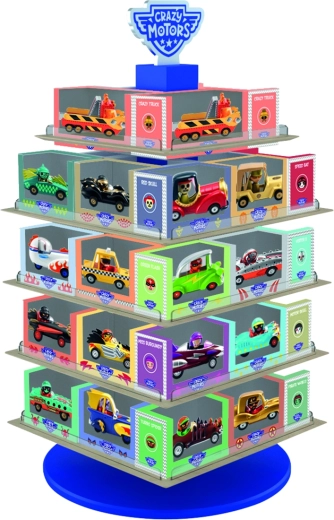 Vrtljivo stojalo Crazy Motors je zasnovano za učinkovito organizacijo in privlačno predstavitev zbirke avtomobilčkov. Zahvaljujoč vrtljivemu mehanizmu imate vse avtomobilčke na očeh in pri roki, brez nenehnega prelaganja.