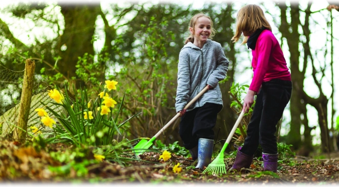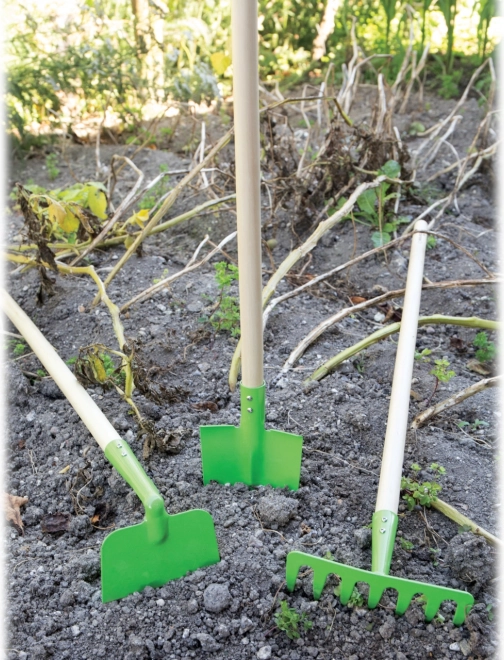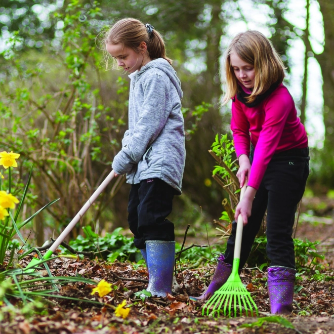 Lopata se odlično dopolnjuje z otroškimi grabljami ali metlo – ustvarite popoln vrtnarski komplet za igro in učenje na vrtu.