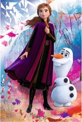 Priljubljena junaka ANNA in OLAF iz pravljice Frozen otroke vabita k sestavljanju vesele slike. S 54 kosi je sestavljanka primerna tudi za začetnike – podpira potrpežljivost, logično razmišljanje in fino motoriko. Kompaktna embalaža se zlahka spravi v nahrbtnik, zato lahko puzzle vzamete na vrt, piknik ali v park.