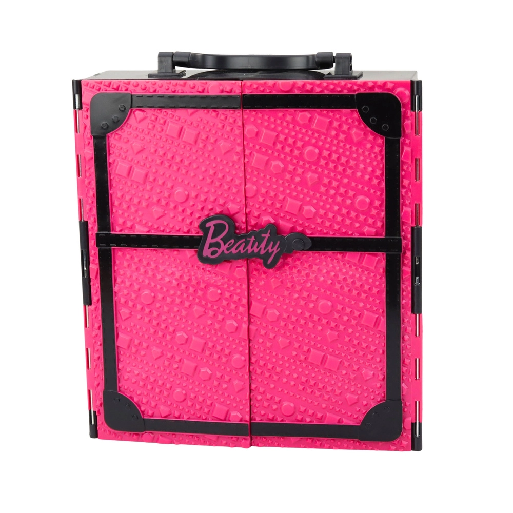 Zložljiva rožnata garderoba je kombinacija hiške in prenosne garderobe za punčke. Po odprtju nastane pregleden prostor s policami, predali in obešalniki, ki navdihuje k ustvarjanju outfitov in ohranjanju reda. Priložena je ena velika punčka (pribl. 30 cm) ter komplet elegantnih oblek, čevljev, torbic in nakita.