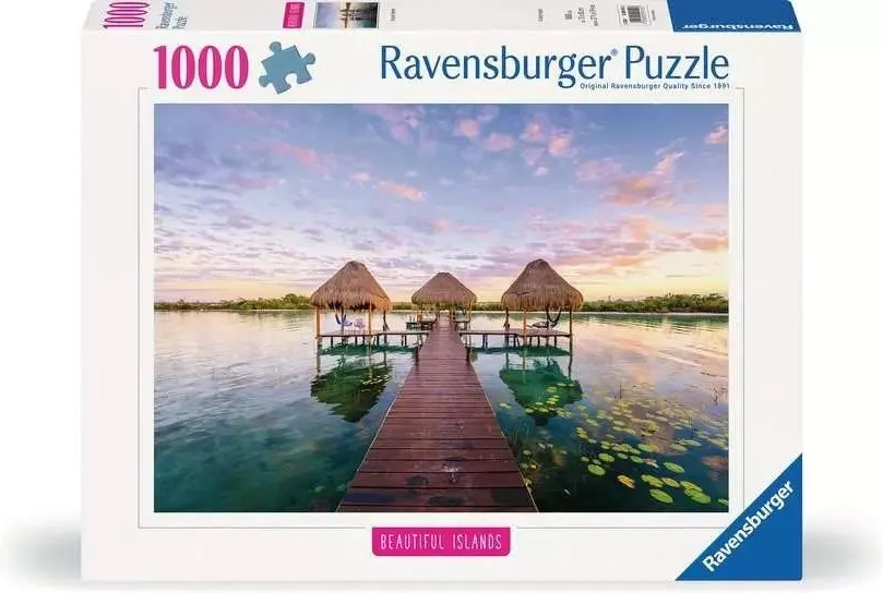 Odkrijte sprostitev s sestavljanko, ki združuje čudovito scenografijo in vrhunsko izdelavo. Motiv mirnega pomola, ki vodi do eksotičnih paviljonov, v vas prebudi željo po harmoniji, medtem ko 1000 skrbno izrezanih koščkov ponudi prijetno mero osredotočenosti in oddiha. Idealno za večere z družino ali trenutke samo zase.