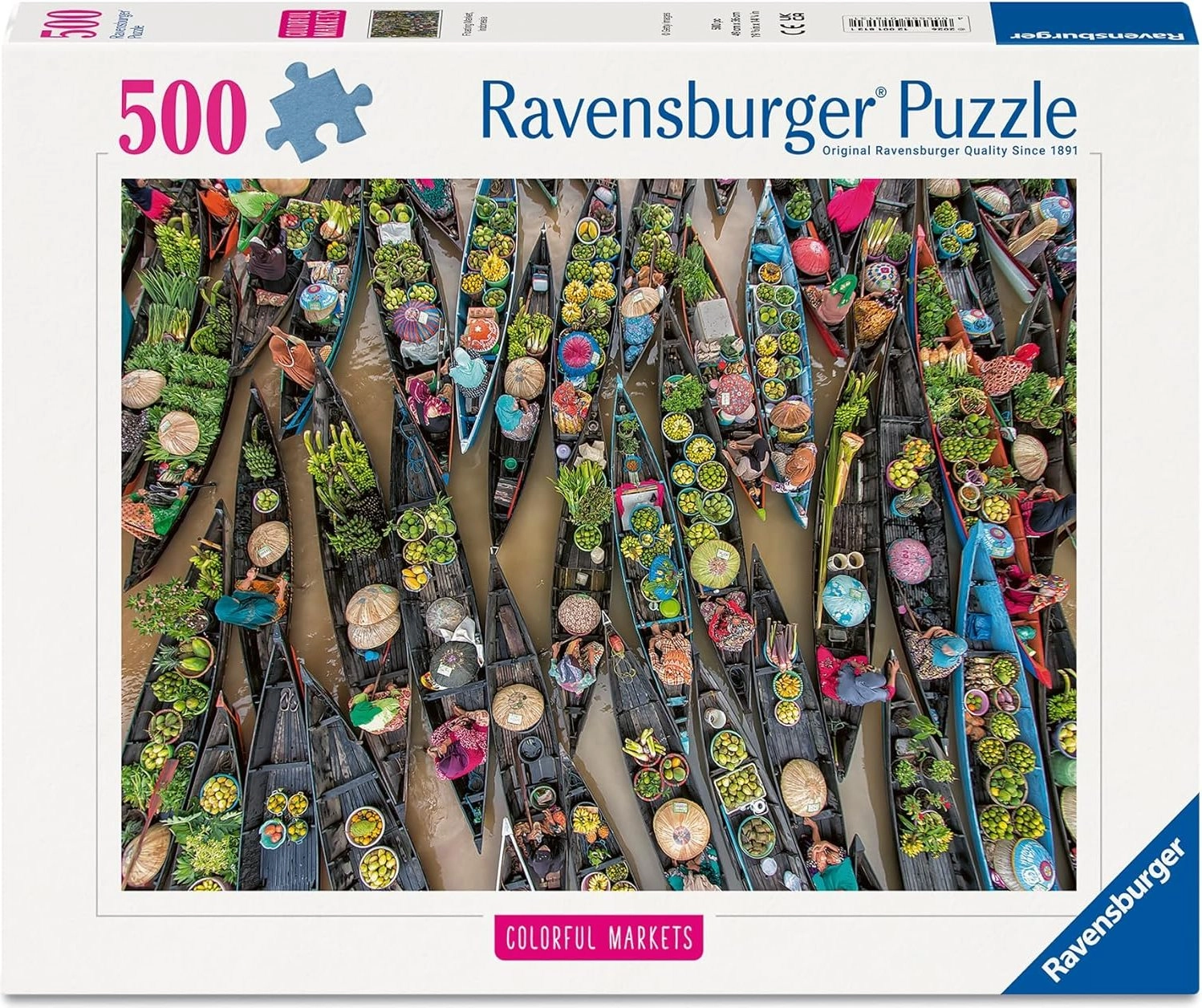 Odkrijte vzdušje indonezijske tržnice s sestavljanko RAVENSBURGER, ki izstopa po precizni izdelavi in živih barvah. Ta sestavljanka s 500 koščki je odlična izbira za mirne večere in sproščene vikende ter nudi uravnotežen izziv za začetnike in zmerno napredne.