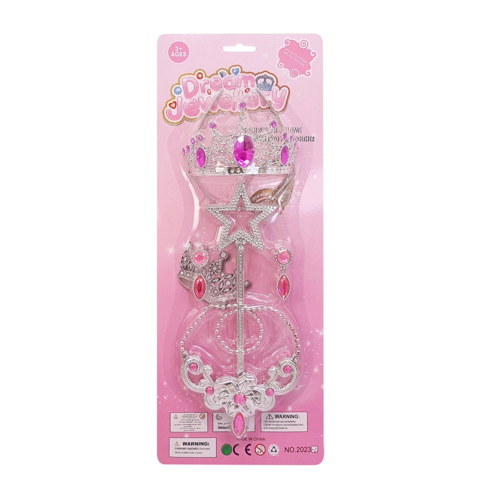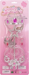 - Celovit set: krona, čarobna paličica, ogrlica in uhani