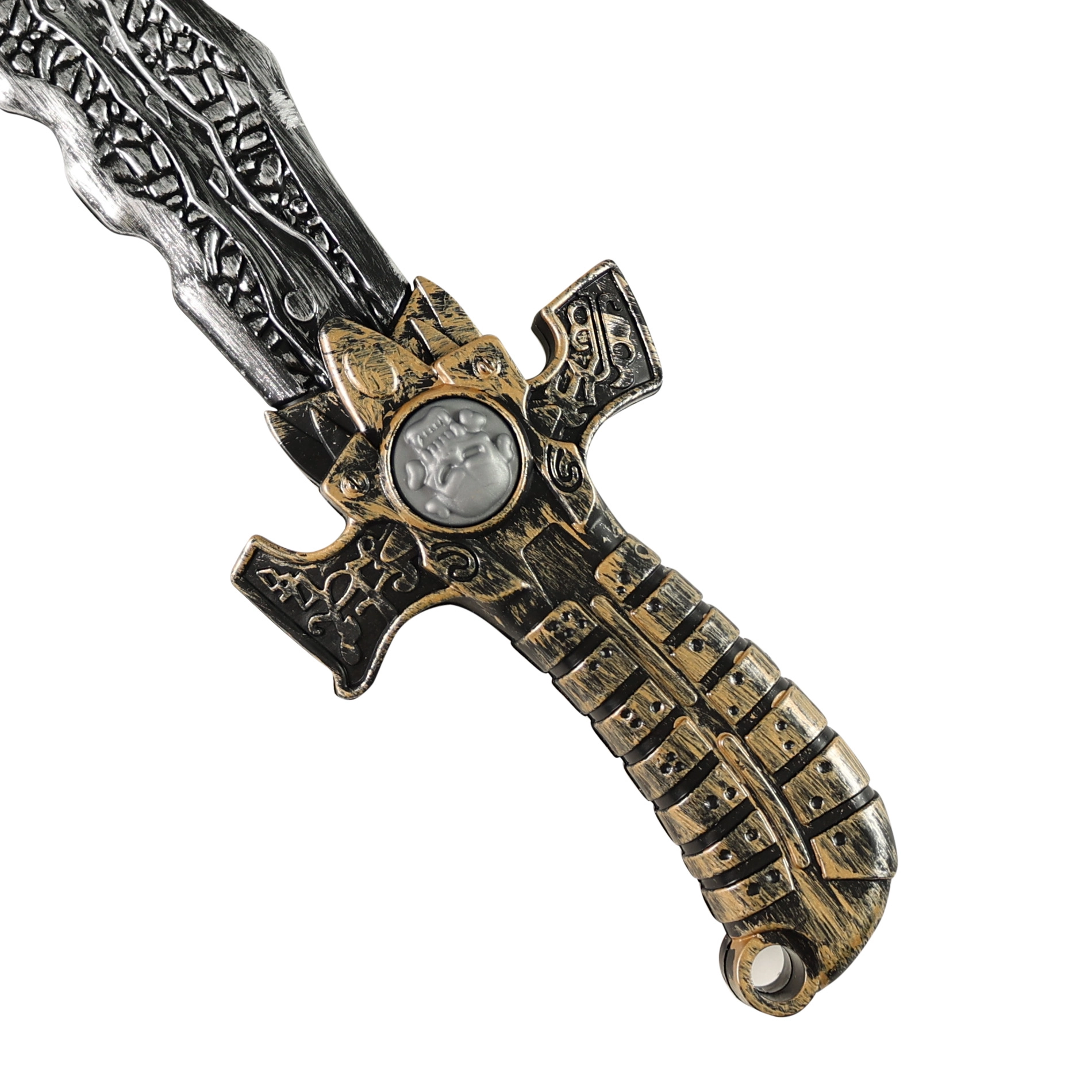 Dekorativno rezilo z reliefnimi detajli in izrazit ročaj s piratskimi motivi dajeta igrački avtentičen videz, ki spodbuja ustvarjalnost in igranje vlog.