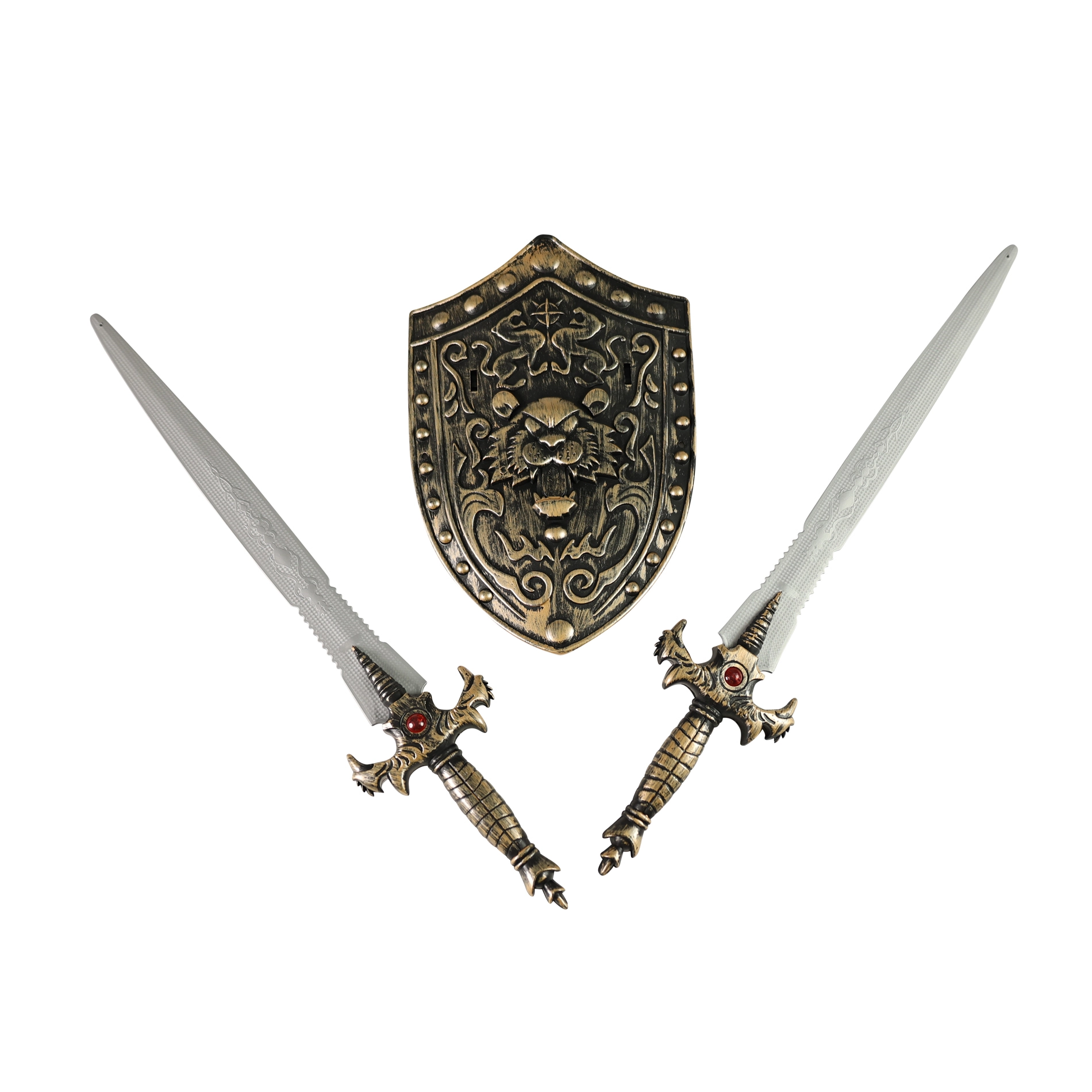 Postanite pogumni vitez in branite svoje kraljestvo! Otroški viteški komplet s ščitom in dvema mečema dolžine 53 cm je odlična izbira za akcijske igre junakov. Združuje varno zabavo in razvoj otroške domišljije, doma, na vrtu ali na karnevalu.