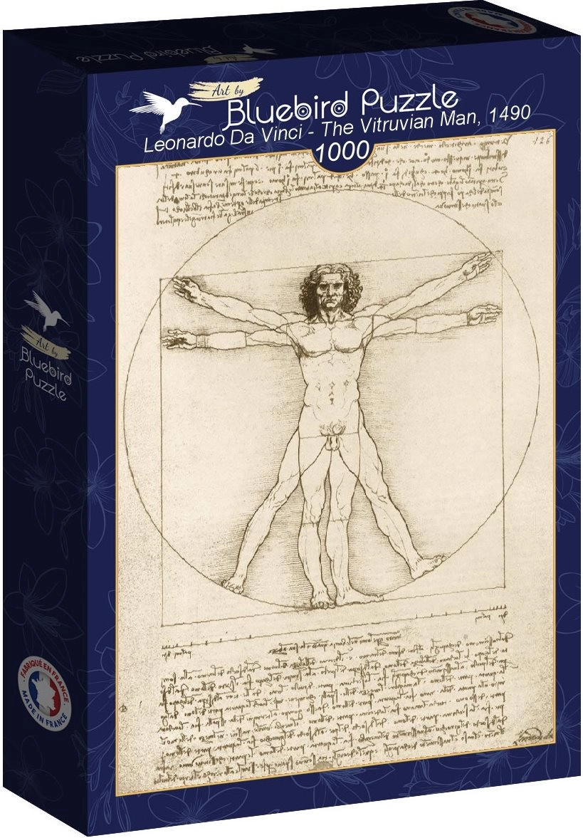 Odkrijte brezčasno umetnost s kakovostno sestavljanko s 1000 koščki, ki prikazuje ikoničnega Vitruvijskega moža LEONARDA DA VINCI. Idealno za ljubitelje umetnosti in zahtevnega sestavljanja; končni motiv meri 47,8 × 69 cm.