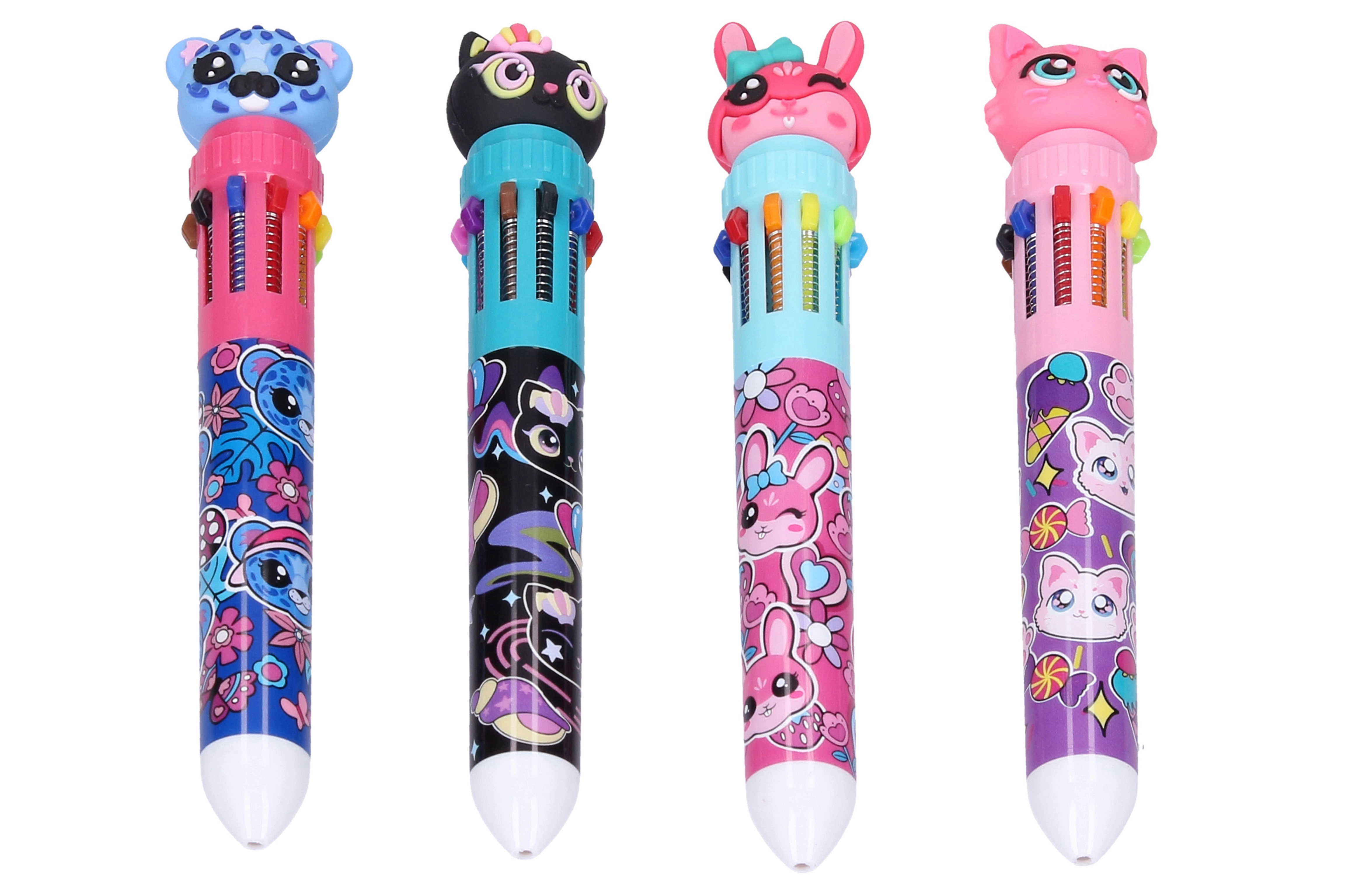 To praktično pero združuje 10 priljubljenih barv v enem kompaktnem ohišju, nežna konica 0,5 mm pa omogoča natančno in čisto pisanje brez packanja. Veseli motivi živalic bodo razveselili otroke in odrasle ter popestrili vsakodnevne zapiske.