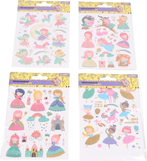 Prebudite otroško domišljijo z začasnimi tatu nalepkami v dekliških motivih. Zaradi enostavne aplikacije z vodo so primerne tudi za najmlajše in zagotavljajo varno zabavo brez trajnih sledi. Velikost lista 10,5 × 15 cm ponuja dovolj motivov za deljenje s prijatelji.