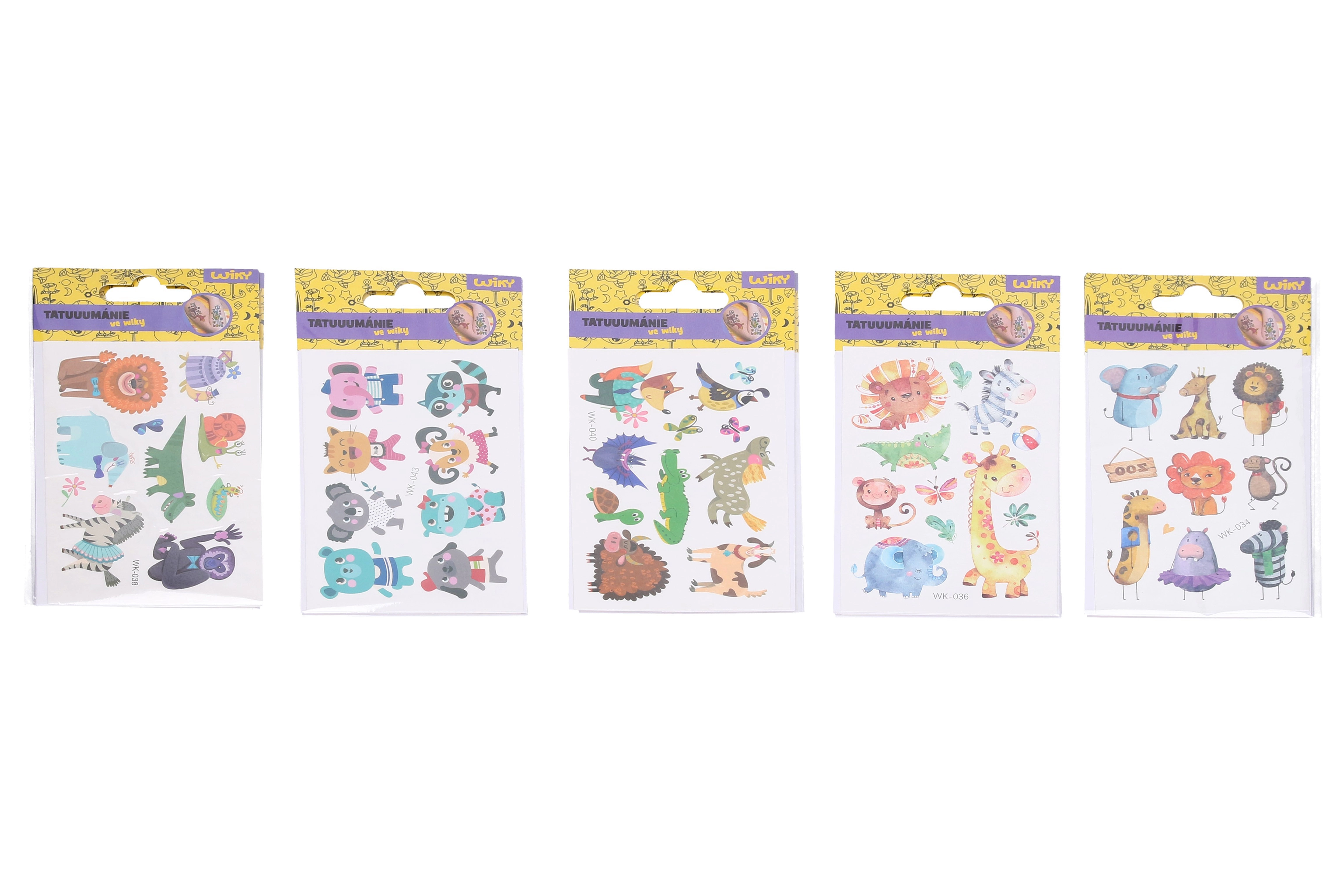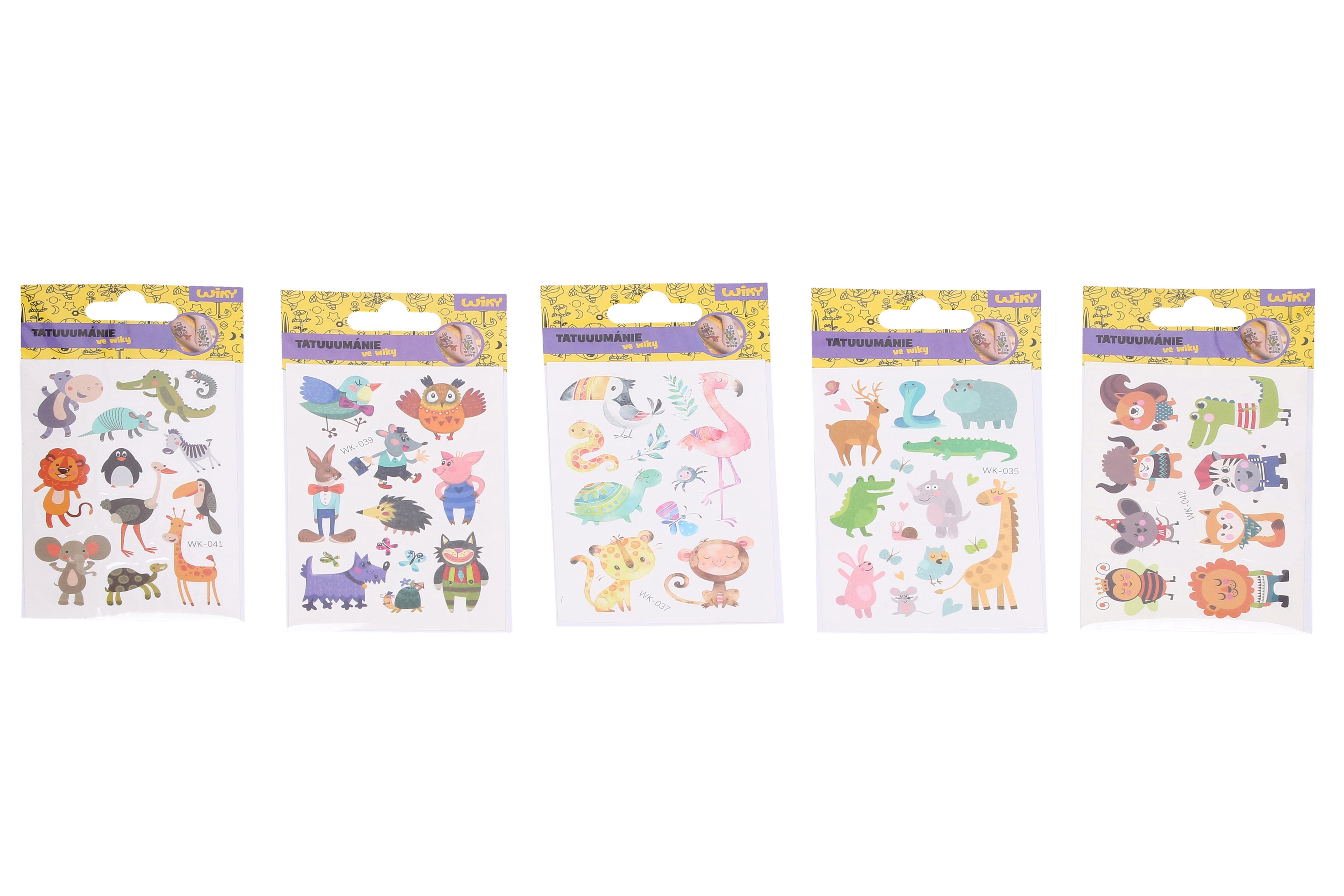 Popestrite otroške zabave, tabore ali družinske vikende z veselimi tetovažnimi nalepkami z živalicami. Zahvaljujoč praktičnemu formatu 7,5 × 11 cm se motivi zlahka prenesejo na kožo in zdržijo več dni. Mešanica prisrčnih živalskih motivov bo navdušila male ljubitelje narave.