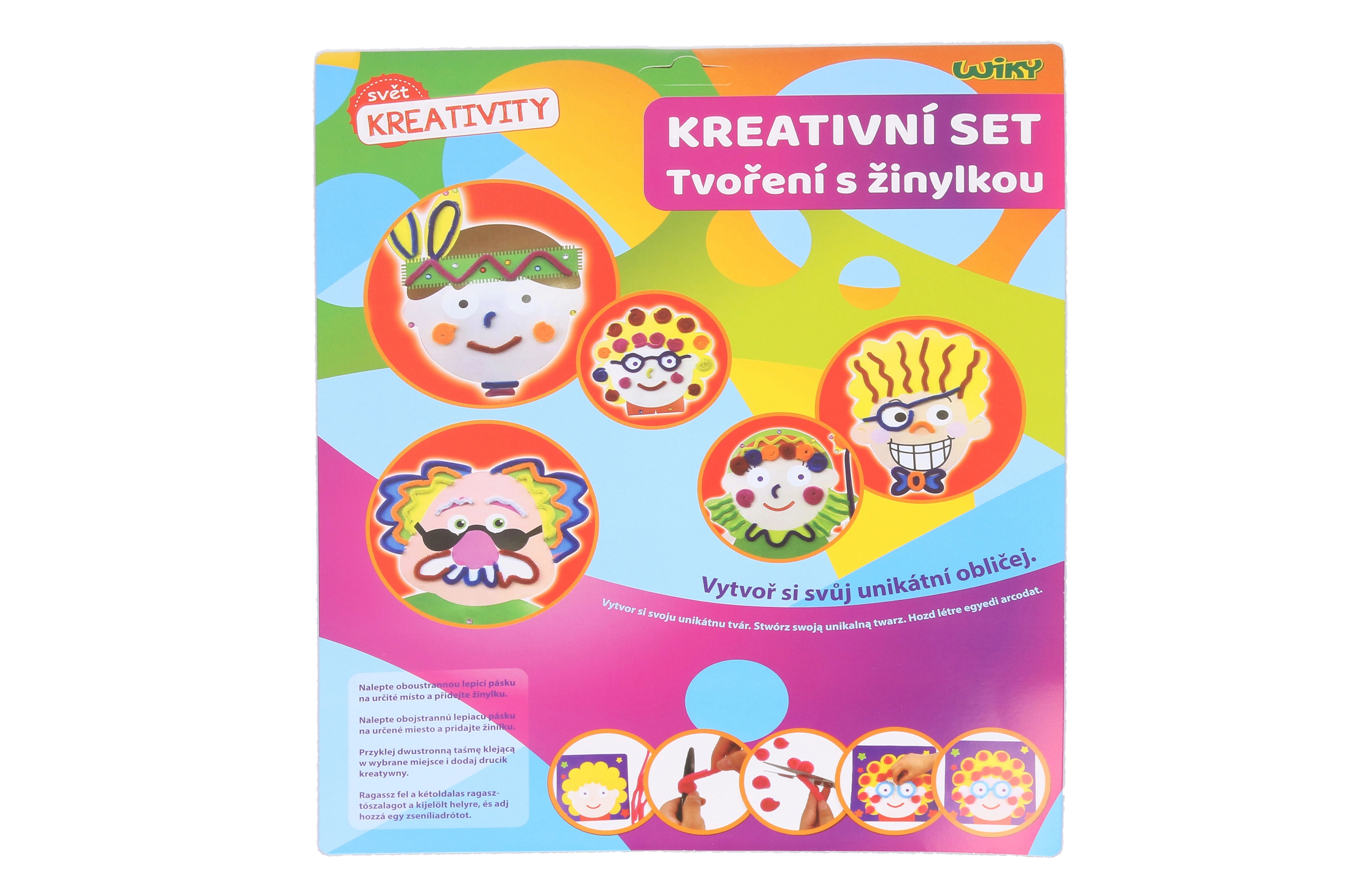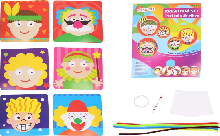 Zabaven kreativni set za otroke, s katerim si zlahka ustvarijo svoj obrazek. Paket vsebuje vse potrebno – žičke (činile), bleščice/kamenčke, obojestranski lepilni trak, stojalo in 1× obraz. Na voljo je 6 različic za še več zabave in domišljije.