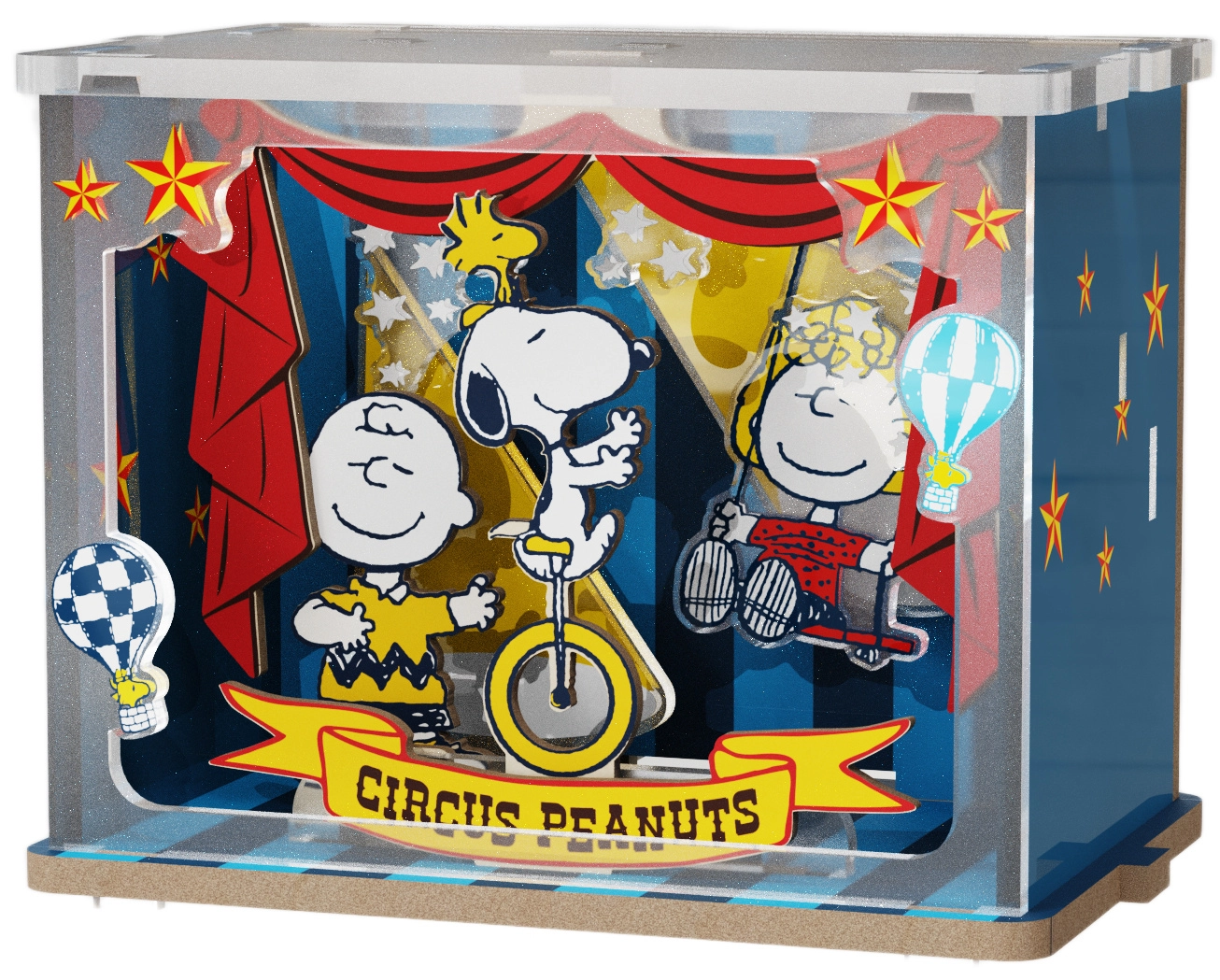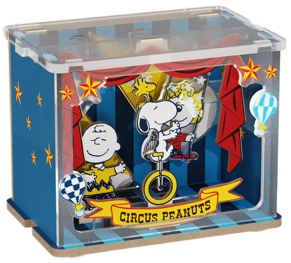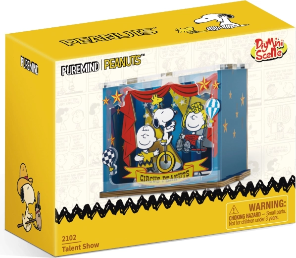 Odkrijte licencirano leseno sestavljanko s priljubljenima likoma Snoopy in Woodstock. Scena »Talent Show« ujame odrske luči, cirkuško rekviziterijo in igrivo vzdušje predstave. Natančno prilegajoči se deli zagotavljajo udobno sestavljanje in trdno končno kompozicijo, ki jo boste ponosno razstavili.