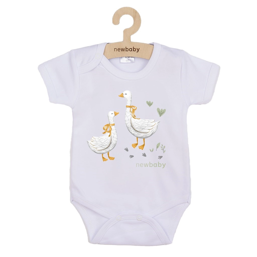Ljubko otroško bodi iz 100% bombaža z motivom gosičk NEW BABY navduši z mehkobo in udobjem za vsak dan. Ima praktično zapenjanje na pritiskače na ramenih in med nožicami za lažje previjanje, je zračno in nežno do občutljive dojenčkove kože. Barve potiska so certificirane, material pa izpolnjuje OEKO-TEX STANDARD 100.