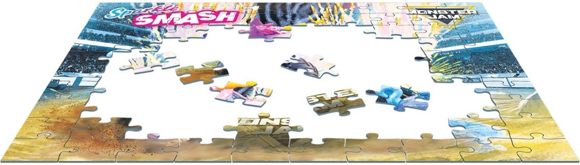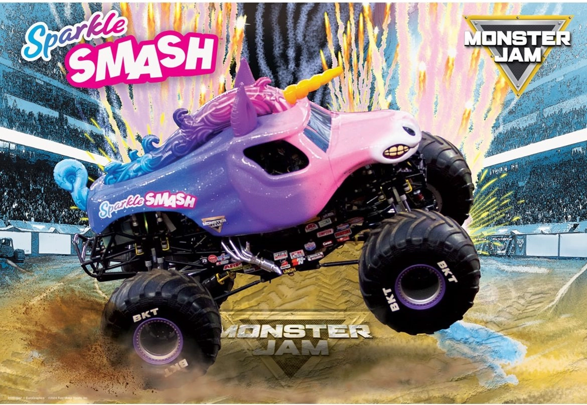 Barvit motiv MONSTER JAM Sparkle Smash in kakovostni izsekani kosi omogočajo gladko sestavljanje in odličen rezultat velikosti približno 48 × 33 cm.