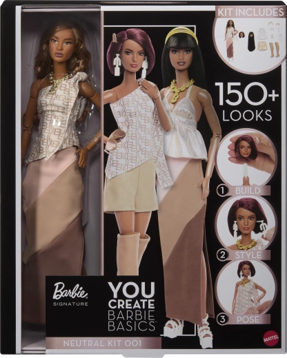 Kapsulna garderoba v nevtralni paleti omogoča kombiniranje klasičnih krojev v več kot 150 oprav. Kakovostni elastični materiali se lepo prilegajo in jih je mogoče kombinirati tudi z drugimi punčkami iz serije Barbie Basics. V pakiranju ne manjkajo stilni čevlji in dodatki, podstavek in certifikat pristnosti – idealno kot darilo in za zbirko.