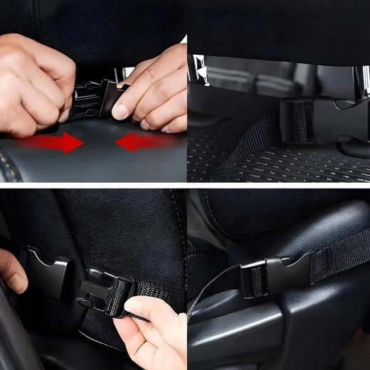 Nastavljivi trakovi s hitrimi zaponkami zagotovijo trdno pritrditev na večino avtomobilskih sedežev. Material hkrati ščiti naslonjalo pred umazanijo in praskami.