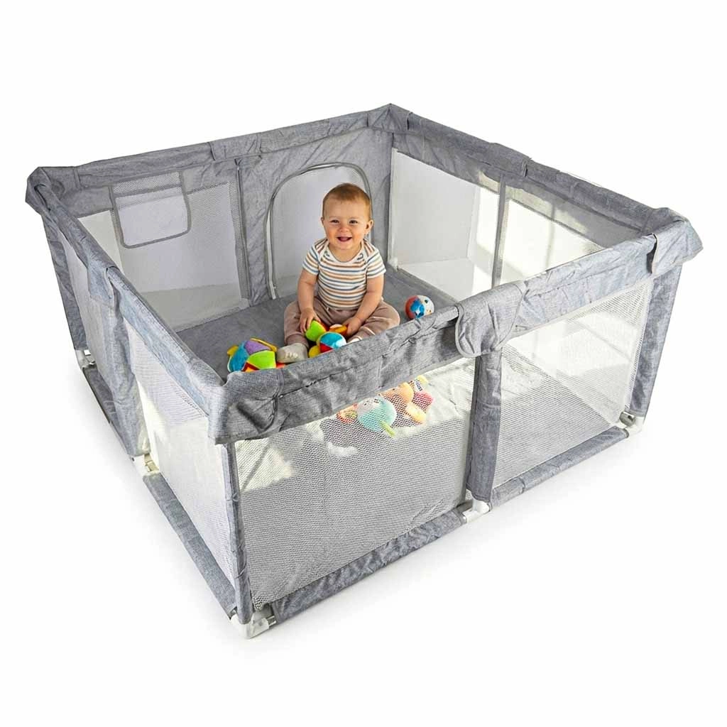 Ta zložljiva ograja otrokom od 6 mesecev naprej nudi varen, zračen in pregleden prostor za igro in miren počitek. Mrežaste stranice zagotavljajo odlično kroženje zraka in staršem omogočajo boljši nadzor, medtem ko oblazinjeni zgornji robovi prispevajo k udobju in varnosti.