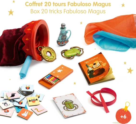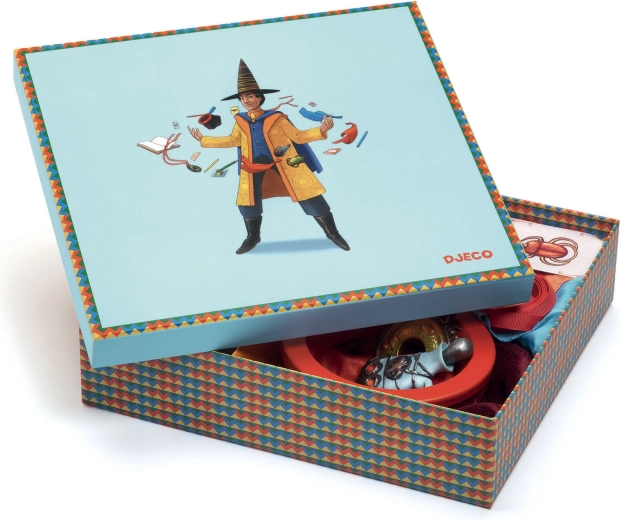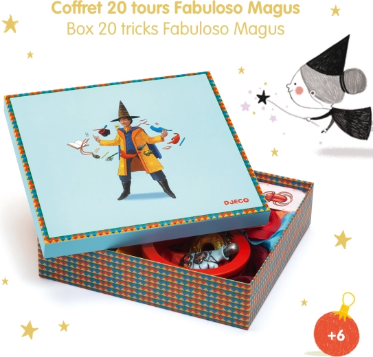 Postanite mladi iluzionist s čarovniškim setom Djeco Fabuloso Magus! Ta ustvarjalni set vključuje preproste in naprednejše trike, ki otrokom pomagajo razvijati samozavest, fino motoriko in predstavitvene veščine. Zahvaljujoč razumljivim navodilom in kakovostni izdelavi je idealen za prva čarovniška nastopa pred družino in prijatelji. Odkrijte svet magije, v katerem je vse mogoče – z preprostimi postopki, atraktivnimi rekviziti in osupljivim učinkom.