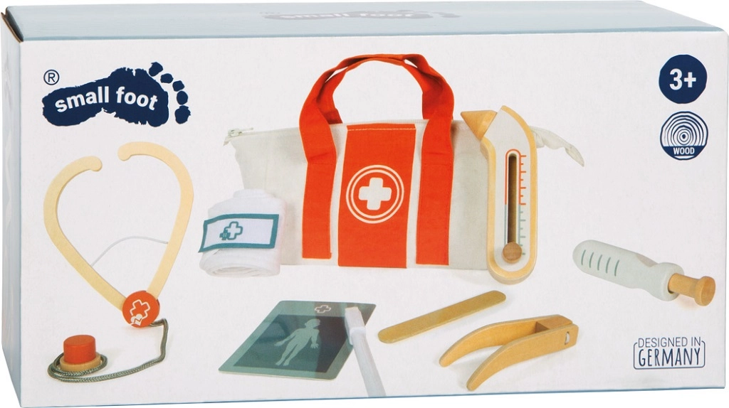 Stetoskop, termometer z drsnim kazalnikom, injekcija, pinceta ali lopatica – varni, gladki in prijetni za otroško roko, spodbujajo fino motoriko.