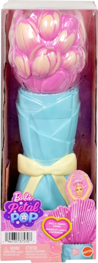 Čarobna Barbie Petal Pop, skrita v cvetočem tulipanu, spremeni odpiranje v doživetje, polno presenečenj. Le uporabite zalivalko z vodo in opazujte, kako se punčka “razcveti” iz šopka. Punčka diši po sladkem cvetličnem vonju, nosi bleščeč outfit, navdihnjen s tulipanom, ter ima prikupne dodatke, vključno z zajčkom, za ustvarjalno igro.