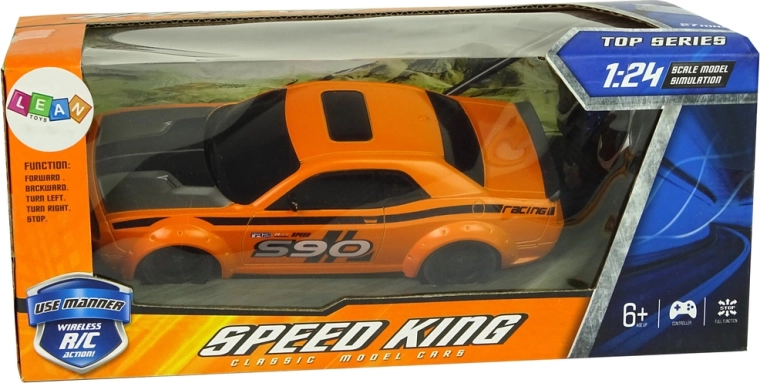 Uživajte v hitri vožnji z realističnim RC avtom v merilu 1:24. Lahka in trpežna konstrukcija, športna zasnova, izrazita oranžna barva ter preprosto upravljanje naprej/nazaj in vstran bosta razveselila male in velike dirkače. Idealna igrača za razvoj fine motorike in koordinacije.