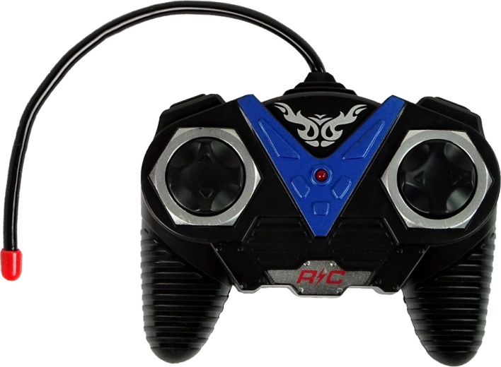Daljinski upravljalnik z dvema joystickoma omogoča gladko vožnjo naprej/nazaj in zavijanje v levo/desno – idealno za začetnike in male dirkače.