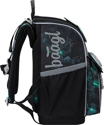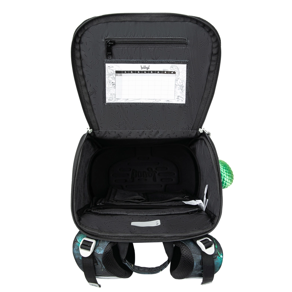 Notranji prostor je praktično razdeljen, z elastiko za fiksiranje učbenikov in zvezkov bližje težišču telesa. Preklopni sistem odpiranja omogoča enostaven dostop do pripomočkov kar iz klopi, medtem ko stranski žepi iz trpežnega materiala sprejmejo tudi steklenico za pijačo. Ne manjkajo varnostni odsevni elementi za dobro vidnost, zanesljive zadrge YKK in trdno dno, zaradi katerega aktovka samostojno stoji.