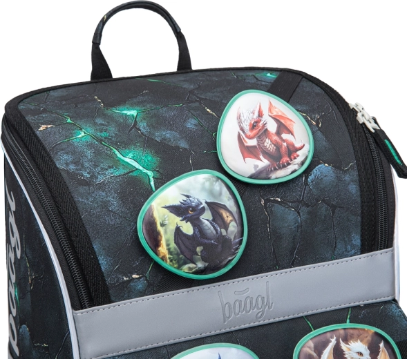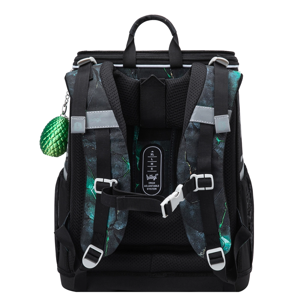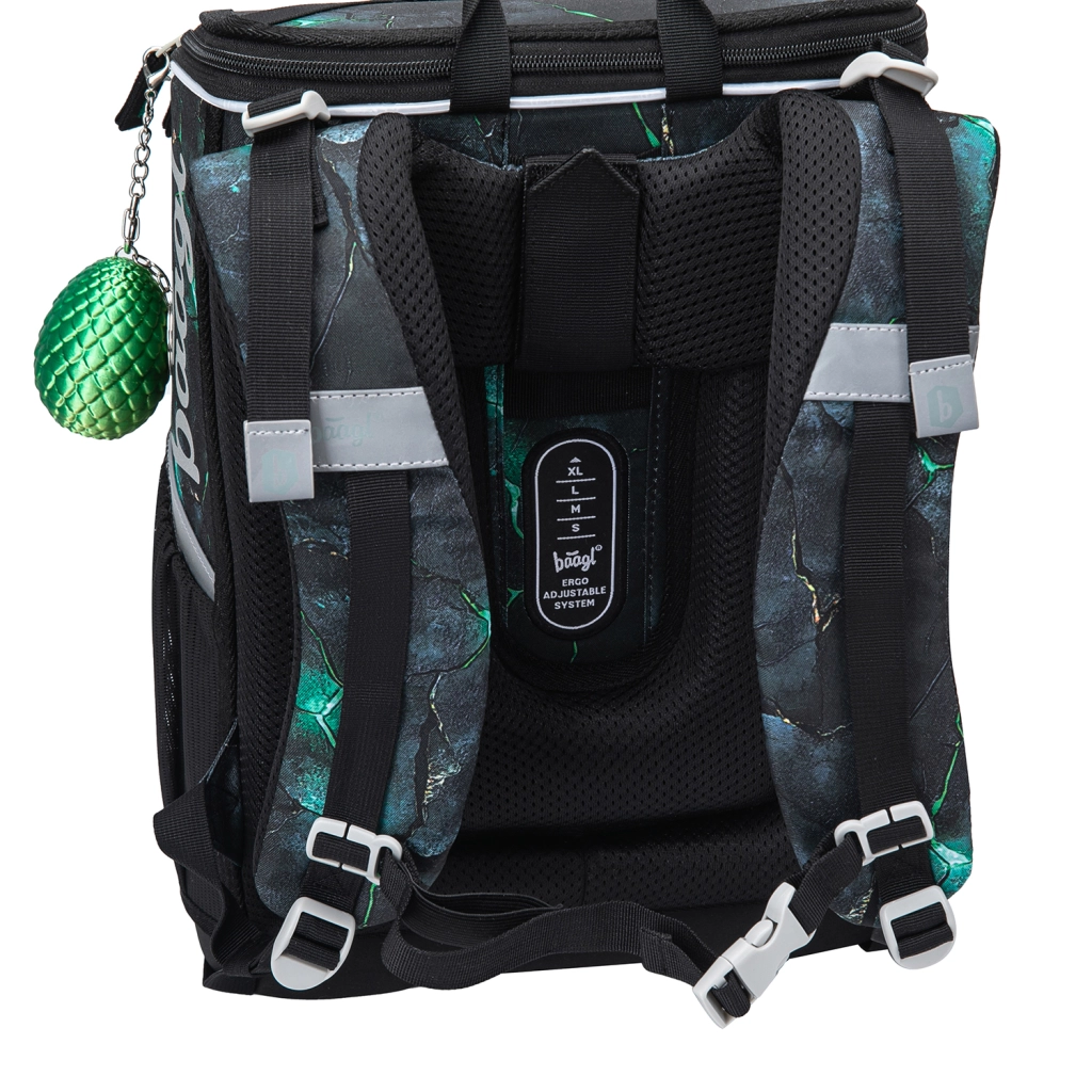 Šolski set BAAGL Zippy Zmaji je zasnovan za udobje, varnost in dolgo življenjsko dobo pri vsakodnevni uporabi. Ergonomska aktovka s pomičnim sistemom ERGO ADJUSTABLE se prilagodi postavi otroka, z odsevnimi elementi pa poveča vidnost. Praktične podrobnosti, kot so preklopno odpiranje, notranja elastika za fiksiranje vsebine ter čvrsti stranski žepi za steklenico, zagotavljajo maksimalen red in enostaven dostop.