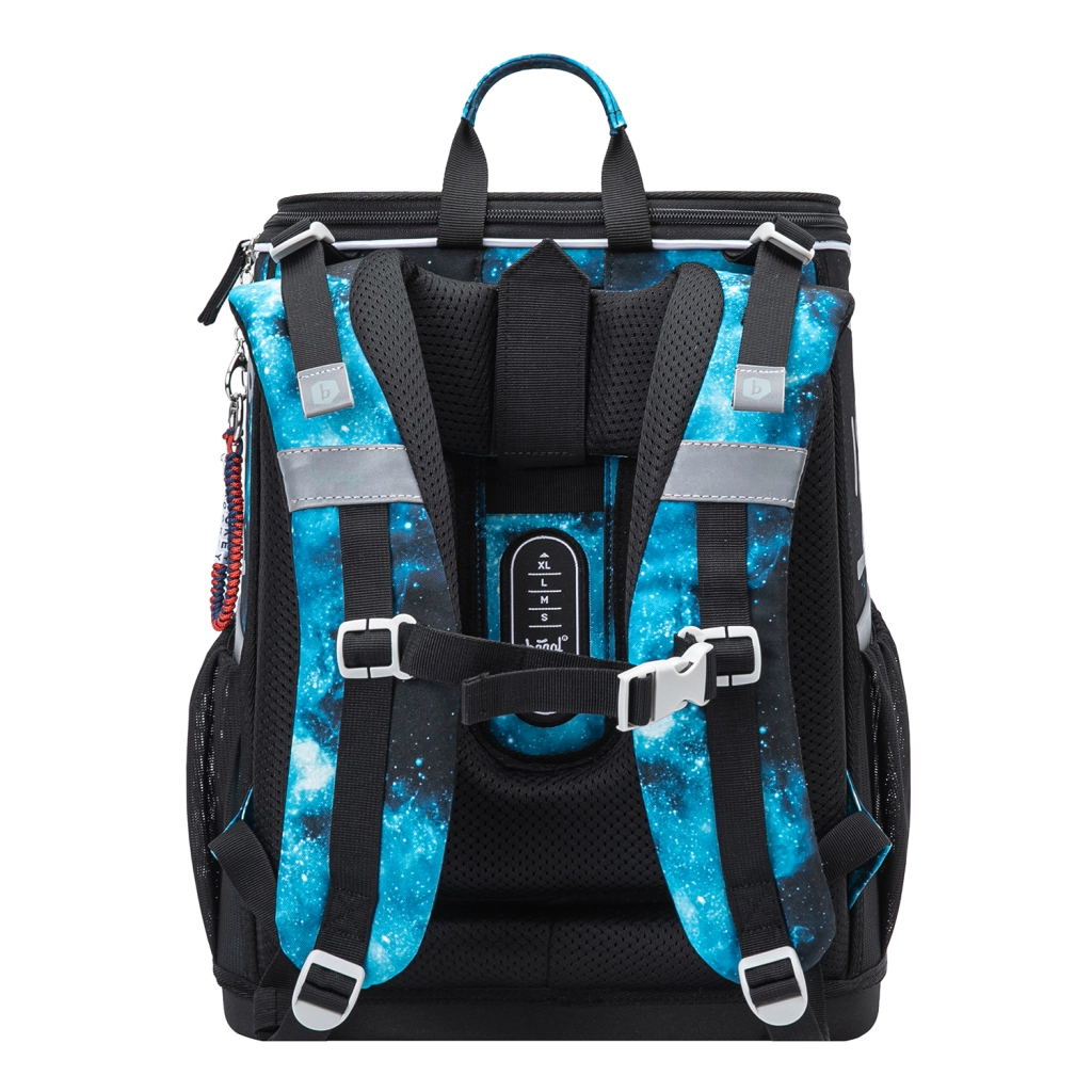 Drsni hrbtni sistem ERGO ADJUSTABLE v treh velikostih, oblazinjene in nastavljive naramnice, prsni pašček ter zračno oblazinjenje hrbta za zdravo nošenje od 1. razreda dalje.