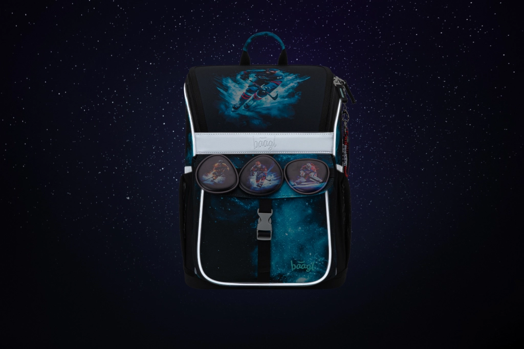 Šolski set BAAGL Zippy Hokej ponuja vse, kar otrok potrebuje za šolo – lahko in stabilno aktovko z ojačanim ohišjem, klasično peresnico z dvema preklopoma, vrečko z žepom na zadrgo in denarnico za okoli vratu. Dizajn z motivom hokeja in zamenljivimi našitki lahko otrok zlahka prilagodi svojemu razpoloženju. Zahvaljujoč odsevnim elementom bo učenec dobro viden tudi v somraku.