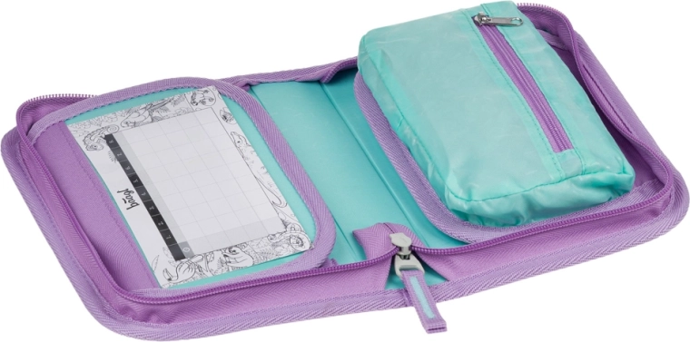 Praktičen in stilski šolski peresnik v nežnem dizajnu Lavender blagovne znamke BAAGL bo razveselil vse šolarje. Ponuja klasično enonadstropno izvedbo z dvema preklopoma, vzdržljivo zadrgo YKK, prostorno razporeditev z žepkom za drobnarije in okence za urnik. Zahvaljujoč trpežnim elastičnim držalom za barvice in flomastre ter možnosti peresnik popolnoma razpreti je odlično pregleden. Izdelan je iz recikliranega materiala in dobavljen brez polnila.