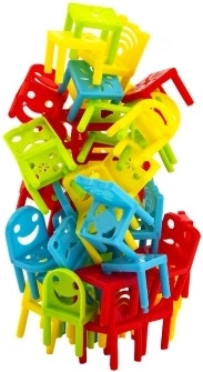 - Različica 1: Igralci postopno zlagajo stolčke v stolp. Kdor podre stolp, izgubi.