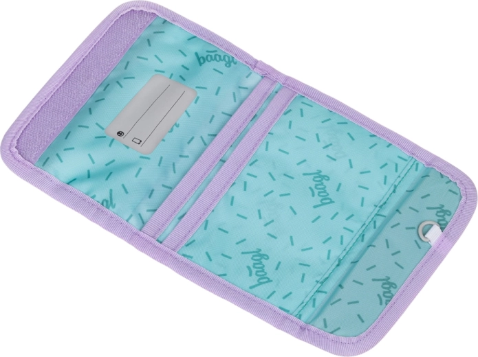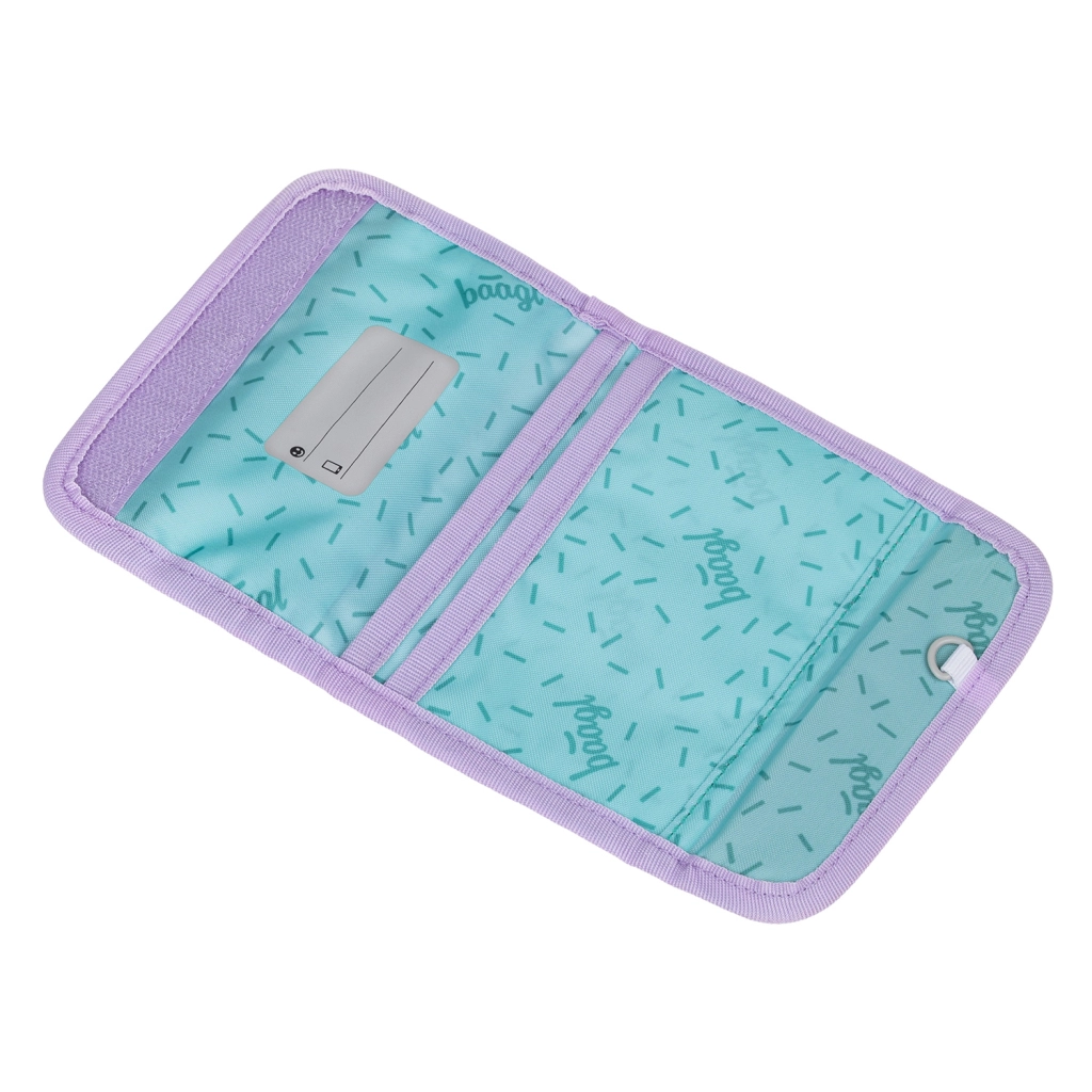 Praktična denarnica BAAGL Lavender je idealna za otroke za v šolo in prosti čas. Zaradi nošenja okoli vratu imajo otroci vse pomembno vedno pri roki in na varnem. Notranja razporeditev s pregradami za kartice in imenovko pomaga ohranjati red, medtem ko sprednji žep na zadrgo hrani kovance in drobnarije.